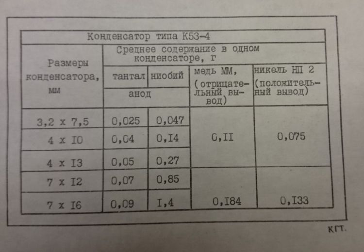 Справочная информация по перечню и количеству содержания драгоценных металлов в изделии: Конденсатор К Данные взяты из открытых источников: документации к изделию, формуляров, технической литературы, нормативной документации. Приводится точная масса содержания драгметаллов: золота, серебра, платины и металлов платиновой группы МПГ на единицу изделия в граммах. Содержание драгметаллов в радиодеталях.