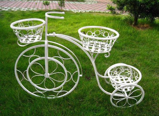 Разумеется, главное украшение сада – это цветы и другие растения. Но часто подставка для них несет отдельную смысловую и декоративную нагрузку. И нередко гости да и сами хозяева не могут отвести взгляд именно от оригинальной подставки, а не от растений.