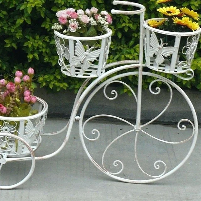 Кашпо кованая подставка для цветов Кашпо велосипед 3-х колёсный большой 80*60 декор цветочных горшков для сада