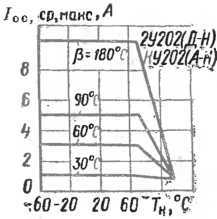 Зависимости допустимого среднего тока в открытом состоянии от температуры корпуса