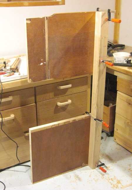 - в процессе склеивания последующих слоев, нехватку струбцин компенсируют с помощью саморезов;