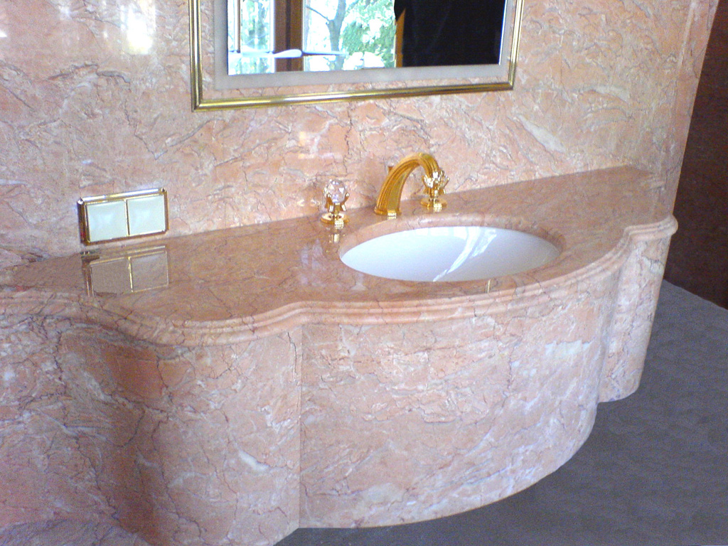 Одним из главных направлений применения литого мрамора являются сантехнические изделия для ванной комнаты и различных деталей интерьера, условия эксплуатации которых требуют высокой влагостойкости.
