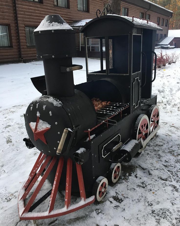 Мангал-паровоз станет очень необычной деталью двора вашего дачного участка. Дизайн может быть самым разным, к тому же при проектировании остается еще больше простора и простора для творчества и дизайна.
