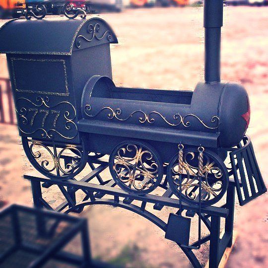 Варианты локомотивов-жаровен безграничны. Благодаря металлу и особенностям конструкции мангал имеет множество специфических декоративных деталей.