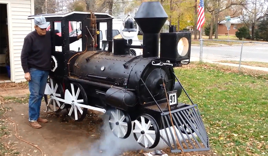 Очень необычной деталью двора вашего дачного участка станет мангал-паровоз.