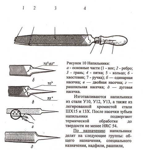 ОСНОВНЫЕ ЭЛЕМЕНТЫ НАСЕЧЕК И РАЗМЕРЫ НАПИЛЬНИКОВ