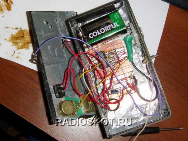 густой смазкой, чтобы вращение было плавным и не сбивалось от вибраций. Узел подстройки приклеивается рядом с катушкой. Настройка производится вдали от металлических предметов. Подсоединяем наушники – сразу пищит.