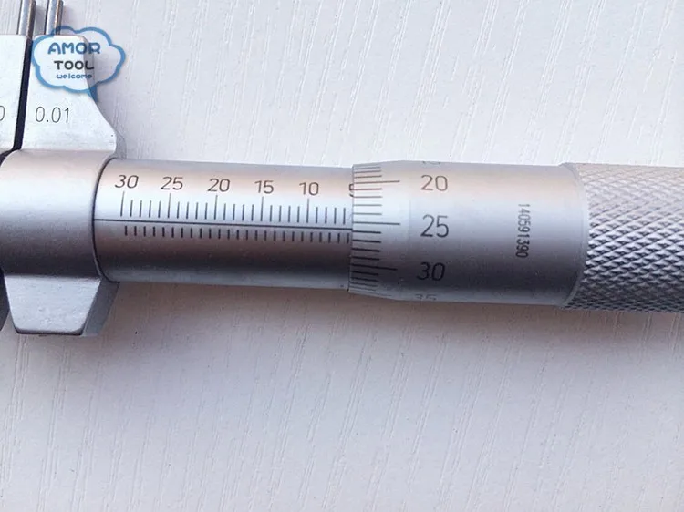 Перед использованием микрометра убедитесь, что на измерительном инструменте и измеряемой поверхности нет грязи, мусора, стружки и т. д. Наперсток микрометра должен вращаться свободно. Поместите инструмент на деталь над отверстием. Вращайте наперсток микрометра, пока стержень не достигнет дна отверстия. Используйте храповик или фрикционный упор, если он имеется на вашем инструменте.
