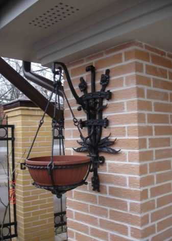 Кронштейн — элемент небольшого размера с крючком (завитком) для подвеса сосудов с растениями. Кронштейн чаще всего выступает в качестве самостоятельного элемента для обустройства настенных цветников. Но также может быть частью цветочницы на окно.