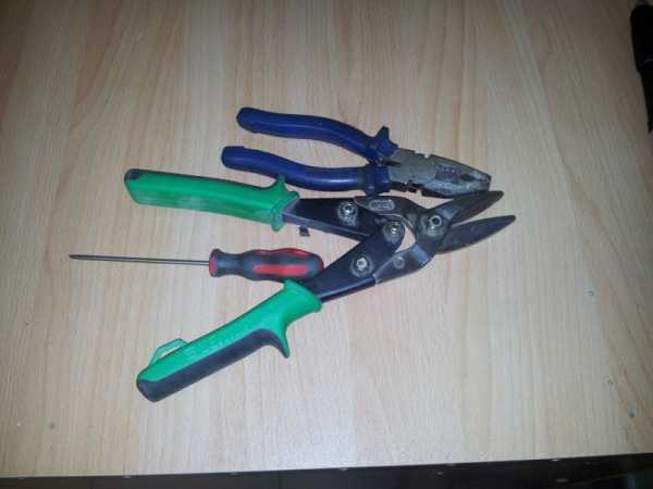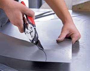 - Kraftool — классические ручные приспособления для разрезания листового металла. Легко прорезают толщину в 1,5 мм. Имея практический опыт использования подобных инструментов, можно использовать их как для прямых, так и для фигурных резов.