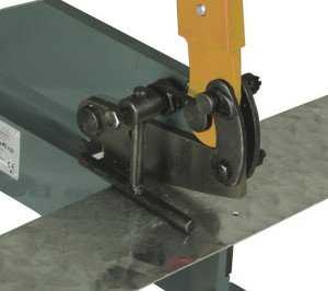 Для улучшения надёжности монтажа настольных ручных ножниц с рычажным механизмом на слесарный верстак, его стоит усилить с противоположной стороны при помощи стального уголка, швеллера или толстой полосы.