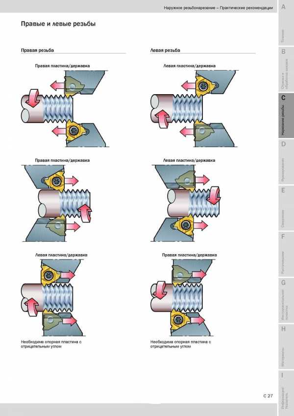 Правосторонняя резьба направляется от конца спирали по часовой стрелке вправо. Если направление витков (спирали) влево, то деталь закручивается в левую сторону против часовой стрелки.