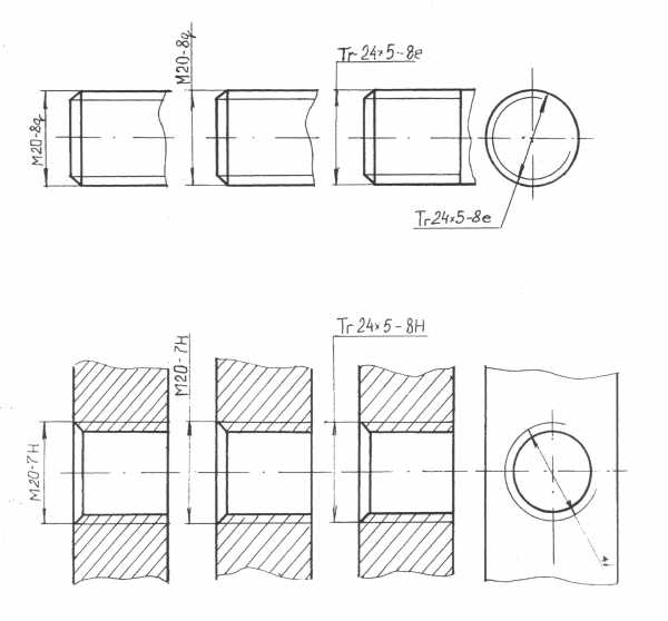 Рисунок 8 – Обозначение наружной и внутренней резьбы на чертеже