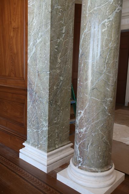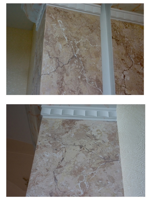- При значительных повреждениях — если это возможно, то необходимо срезать поврежденный участок, а вместо него изготовить и установить новый. Мероприятия по отделке новых элементов, выполняются аналогично, как и при изготовлении искусственного мрамора.