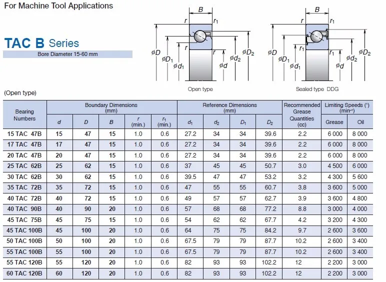 | Примечания | Пара подшипников, установленных друг против друга.![]() | *Расположение DT действует только для одного направления. | * Тип слота заполнения эффективен только для одного направления. | *Также доступен неразборный тип. | – | |||||||
