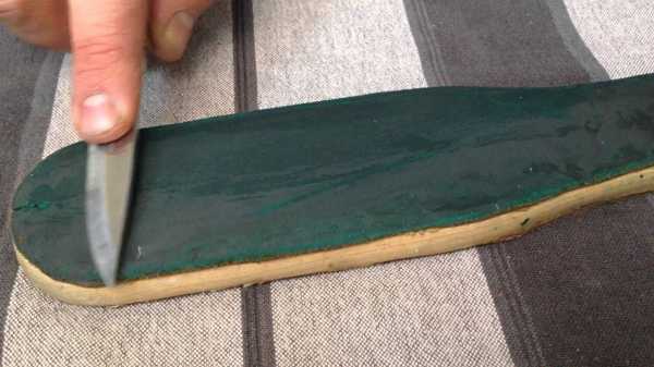 Использование пасты для доводки ножа. Если нужно осуществить доводку лезвия ножа, то натереть пастой нужно гладкую деревянную поверхность, а еще лучше – кожу, натянутую на гладкую поверхность. Например, взять доску для правки ножей. Далее – делать методичные движения ножа, аналогичные тем, что делаются при заточке на обычном точильном камне. Водить лезвием следует по поверхности, обработанной пастой.