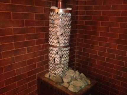 - теплоотдача повышается в том случае, если внутрь основного корпуса поместить ещё одну ёмкость, но меньших размеров. Так можно увеличить тягу и исключить попадание дыма в помещение.