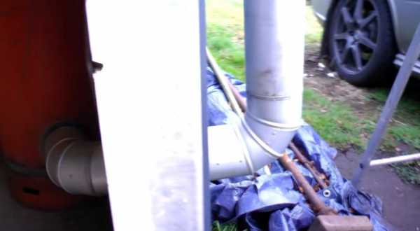 Отверстие для дымохода должно располагаться вверху баллона или сбоку, иногда труба проходит через центральный проём. В боковой части сначала крепят колено, затем сам дымоотвод. Через трубу наружу выходит дым и продукты горения. К нижней части баллона крепят металлическую подставку или прочные ножки. Дополнительно можно подготовить фундамент для буржуйки.