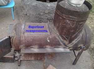 Варочная поверхность необходима в том случае, если на печи будут готовить пищу или нагревать воду. Для её создания нужно вырезать из металла подходящую по размеру деталь и приварить её к верхней части баллона. После этого все стыки и швы проверяют на герметичность и прочность, зачищают и шлифуют их.