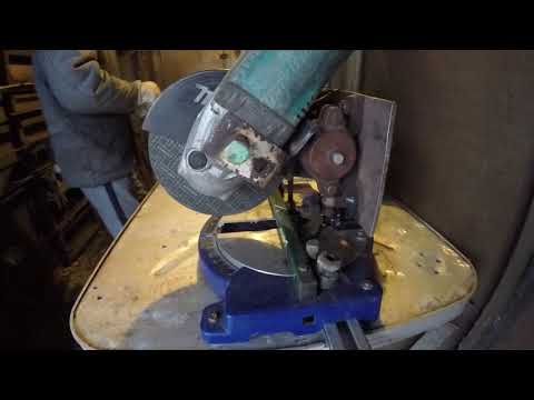 - Закрепив болгарку, в станине делают прорез на весь диаметр диска, чтобы пропил заготовки получался полным.