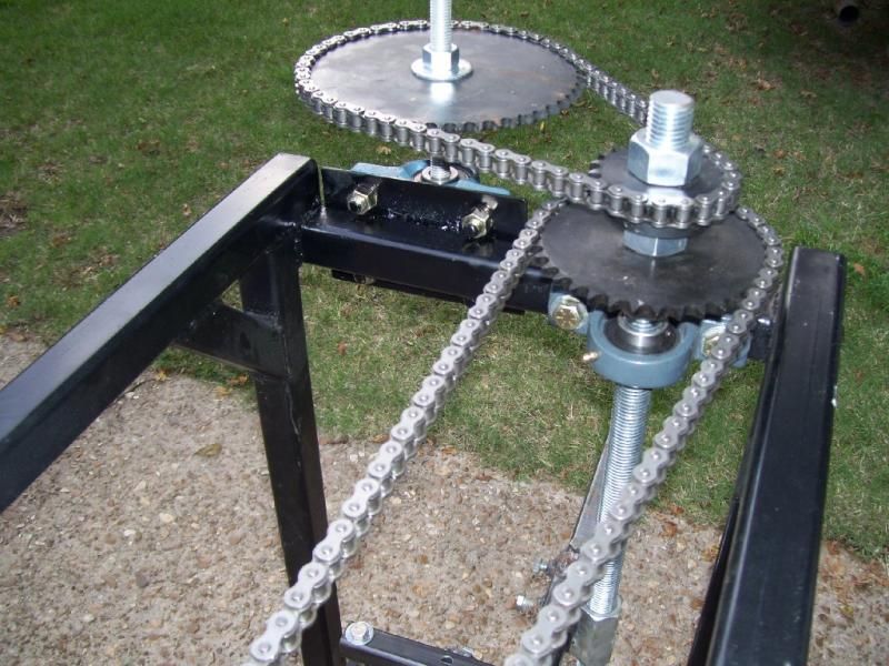 Двигатель можно использовать большой мощности. Монтаж двигателя производится непосредственно на каркас конструкции. Через специальные отверстия рабочие элементы скрепляются с двигателем. Не устанавливайте цепную передачу на такую пилораму, если не хотите получить перегрев самого привода.