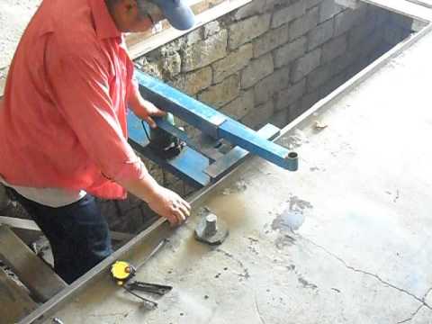 ФОТО: YouTube.comВывинчивающиеся упорыОпорная балка может перемещаться поперёк оси ямы, а вся конструкция на роликах ездит вдоль ямы.