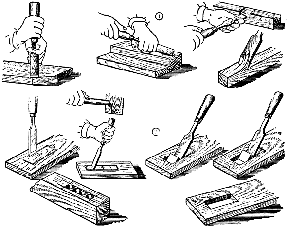 - Боковая резка или создание пазов. Довольно часто обработка предусматривает получение пазов. Плоские стамески по дереву в этом случае помогают получить прямоугольные пазы, скошенный край выполнен в прямом или скошенном виде. В большинстве случаев заточка проводится только с одной стороны, при закруглении кромки можно получить пазы круглой формы.