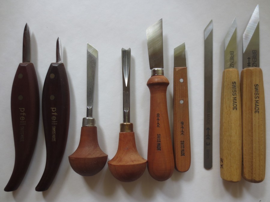 Инструмент для резьбы по дереву состоит из 2-х частей. Рукоять чаще всего изготовлена из вязкой породы дерева: клена, вяза, граба, ясеня. Встречаются пластиковые варианты, для удобства работы они имеют резиновые вставки.