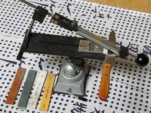 Для затачивания европейских и японских изделий существует универсальная машинка для заточки ножей и ножниц с трема стадиями процесса. На первой происходит обработка ножей с углом заточки до 15 градусов, на второй – 15-20 градусов. На третьей же используются композитные диски, которые создают микроскопичный угол. Такая обработка позволяет создать тонкую режущую кромку.