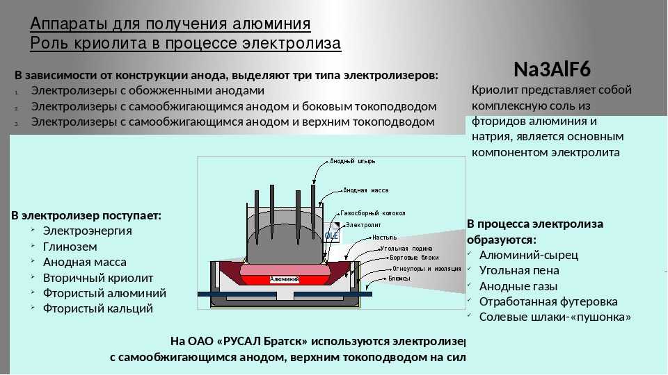 - процесс электролиза, используемый для превращения сырья в алюминий;
