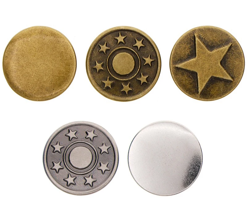 Всё, джинсовые пуговицы без центрального отверстия, на фиксированной и на ломаной ножке, установлены.