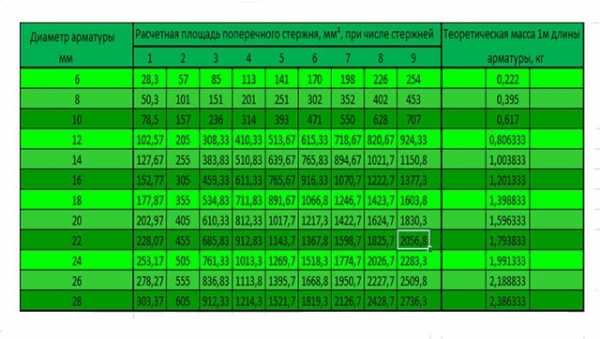 Таблица: Теоретическая масса 1 погонного метра арматуры по ГОСТ 5781-82