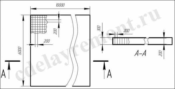 Произведем расчет арматуры для плитного фундамента под здание 10х6 м. Толщина плиты определяется расчетом нагрузки, приходящейся на основание. В нашем примере она будет составлять 30 см. Армирование выполняется двумя поясами с шагом сетки 20 см. Нетрудно подсчитать, что на каждый пояс понадобится: