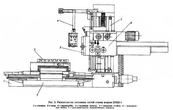Расположение составных частей расточного станка 2а620