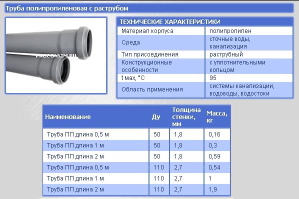 Размеры, длинна и другие характеристики канализационных труб пвх