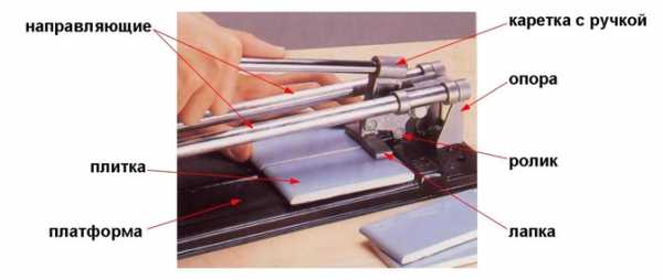 Поскольку самым распространенным способом обработки керамического гранита в домашних условиях является ручной плиткорез, стоит рассмотреть подробнее, как резать керамогранит этим инструментом.