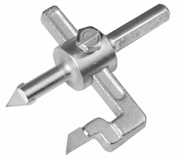 Напоминает циркуль: имеет центровочное сверло и один или два резца на отведенных в сторону ножках.