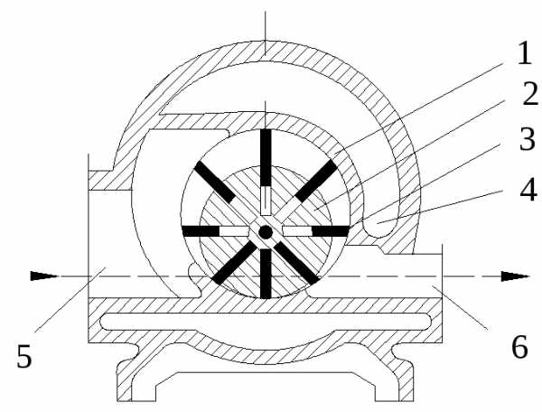 Ротационно-пластинчатый компрессор схематически представлен на рисунке 3. Ротационно-пластинчатые компрессоры имеют в своем составе ротор с несколькими скользящими пластинами, которые эксцентрически монтируются в корпусе.