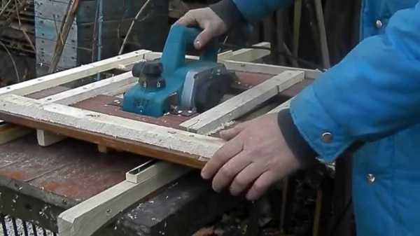 Опорная станина на столе для ручного инструмента выполняет функцию направляющей своими руками. Она контролирует направление, в котором осуществляется распил, и фиксирует заготовку. Если хотите сделать самодельный электрорубанок на станине, то смотрите видео: