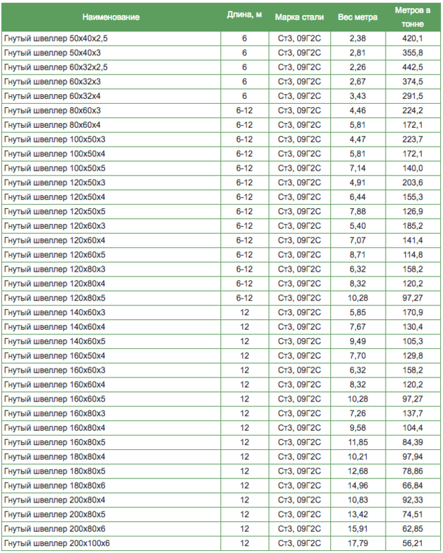 Дело в том, что инженерные расчеты металлопроката всегда ведутся в метрах. То есть, у вас в смете будет прописано – необходимо купить 300 метров металлического швеллера определенного типа, но все производители продают металлопрокат по весу. И цена, указывается не за метр, а за тонну.