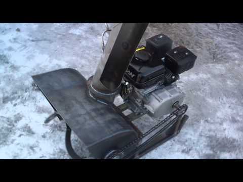 Чтобы заработало, для начала надо сделать винт, как он делается мы уже говорили. Дальше всего лишь нужно отсоединить двигатель от вашей версии бензопилы и подключить его к шнеку.