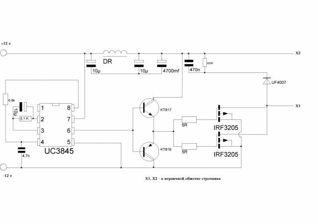 Первичная обмотка трансформатора Т2 состоит из двухсот витков (провод сечением 2,5 мм2). Вторичная обмотка, соответственно, имеет семь витков (используется провод сечением 50 мм 2 , при этом важно, чтобы провод был в изоляции).