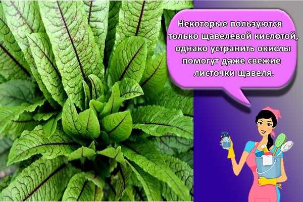 Некоторые пользуются только щавелевой кислотой, однако устранить окислы помогут даже свежие листочки щавеля. Для начала надо в небольшую кастрюлю поместить пучок с щавельными листками и залить их холодной водичкой. Затем емкость устанавливают на газовую плиту и кипятят на протяжении получаса. Когда жидкость закипит, в ней отмачивают алюминиевое изделие.