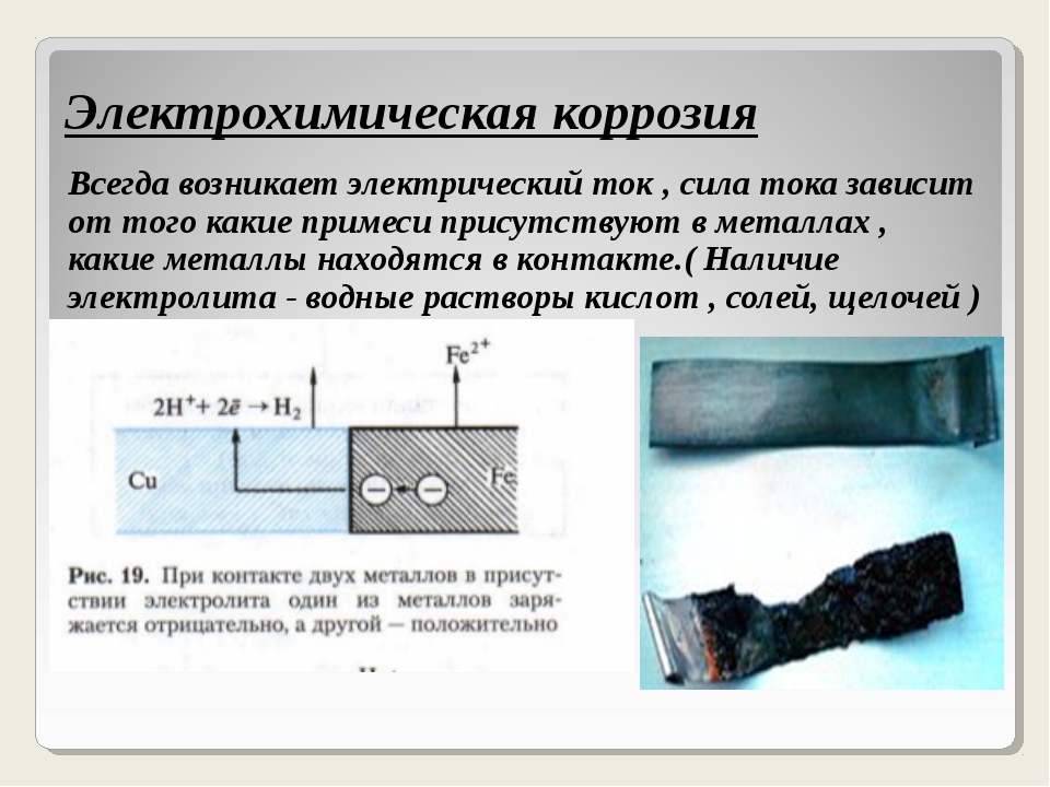 Когда два разнородных металла (например, железо и алюминий) соединяются вместе в электролите, между ними проходит электрический ток, и возникает коррозия. Это связано с тем, что металлы в целом можно расположить, в зависимости от их электрического потенциала, в таблицу, называемую «гальваническим рядом».