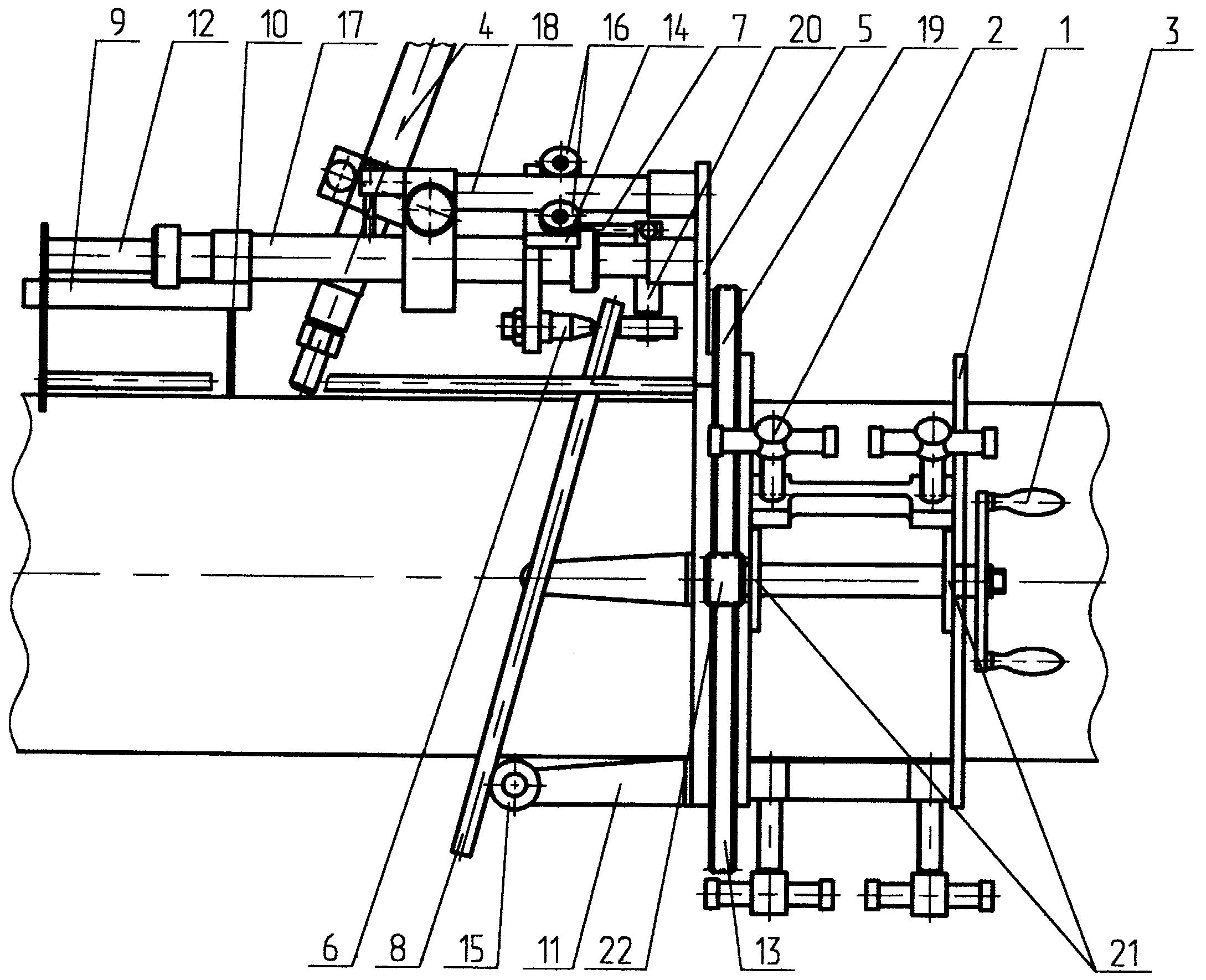 Упор (№5) изготавливается из уголка и прикрепляется к опоре (№8) которая сама по себе закрепляется на обойме. Упор и обойму нанизывают на опорную ось (№15) а после этого приваривают к направляющим балкам.
