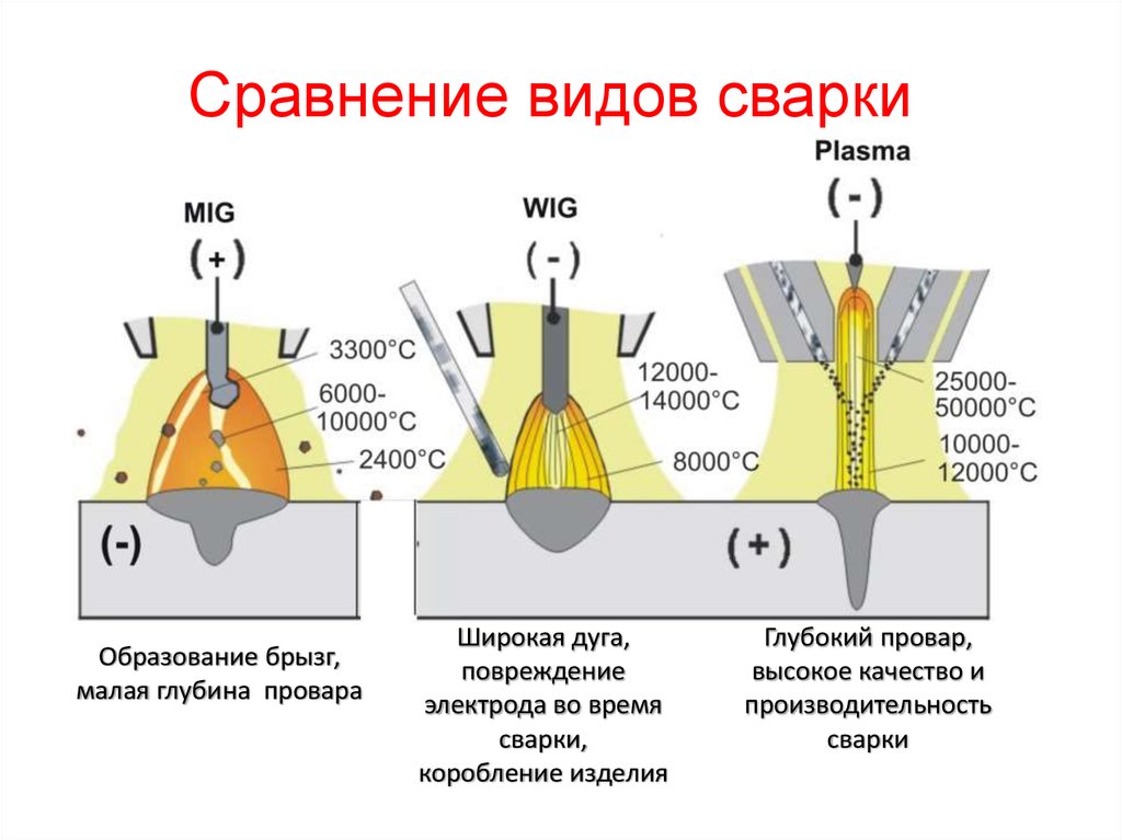 - Значительная глубина плавления.
