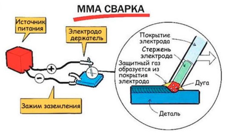 В процессе горящего покрытия электродажа вокруг дуги газовую оболочку и жидкую шлаковую ванну. При внешнем удалении из рабочей зоны электрической дуги, создается сварочный шов, на поверхности которого происходит корка из шлака в виде своеобразного панциря.