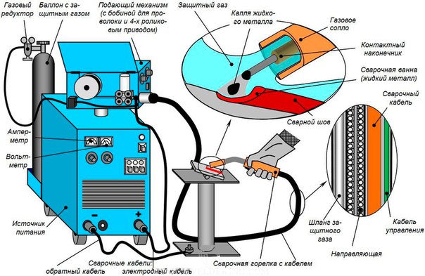 - MIG – MAG , при которой в зоне сварки подается инертный газ.