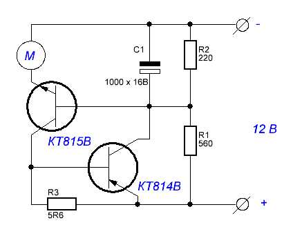Схема автоматического регулятора оборотов в зависимости от нагрузки для двигателя на 12 В (нажмите для увеличения)