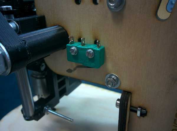 Микропереключатель устанавливается на прорези кнопкой в сторону двигателя. Позже его положение можно будет откалибровать.